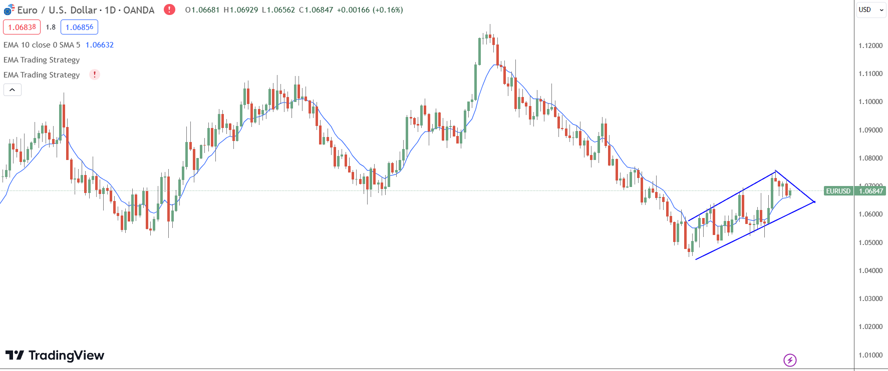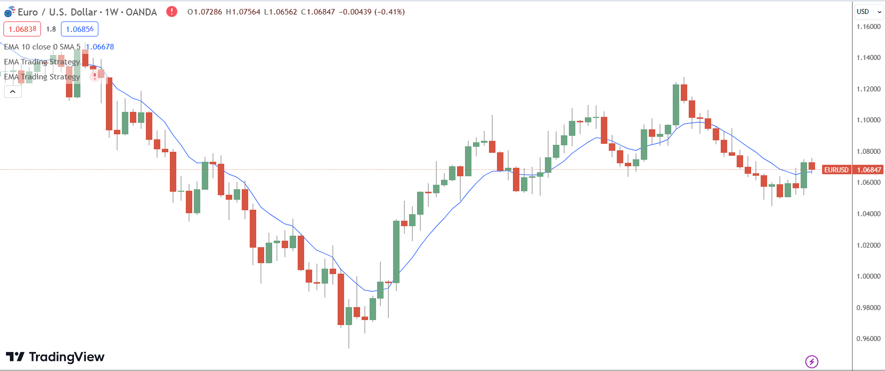 - Confirm the breakout above the 10 EMA on the weekly timeframe in EURUSD.