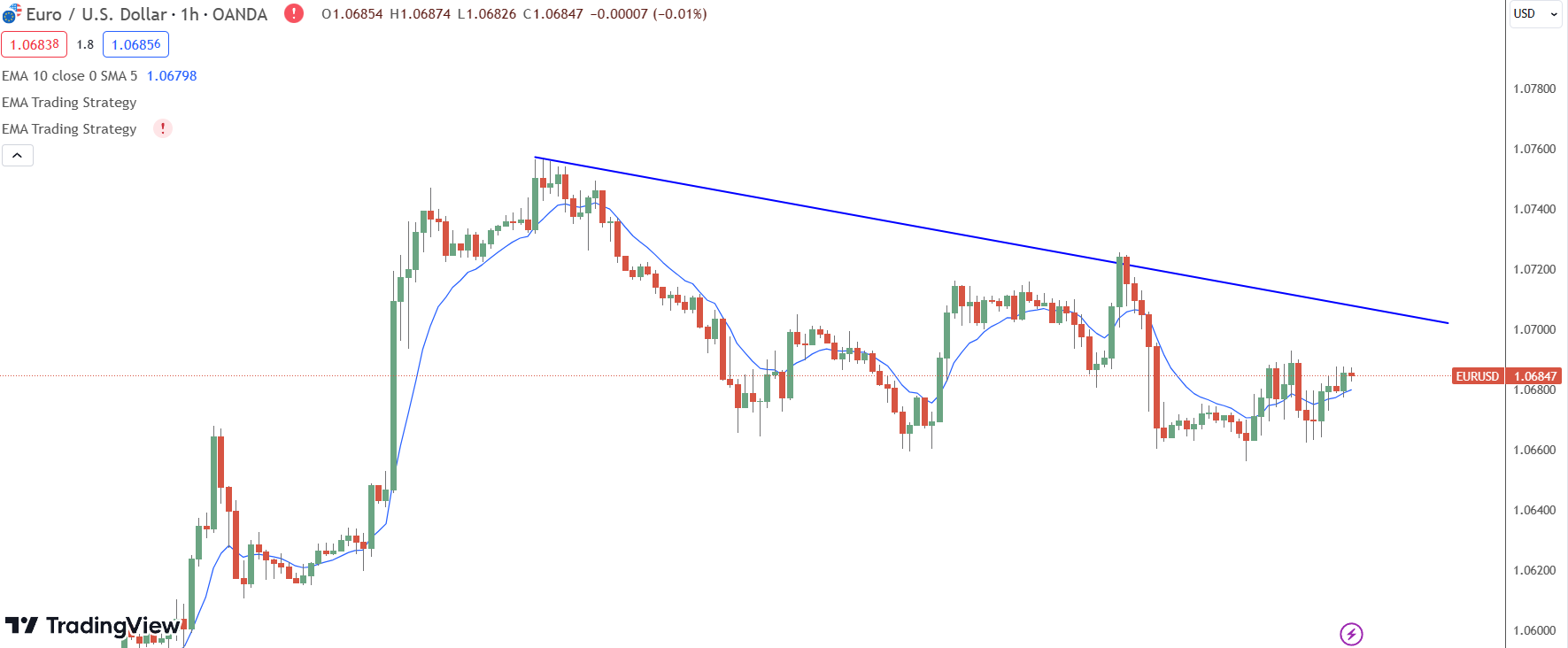 - Trend Line on One-Hour Timeframe: