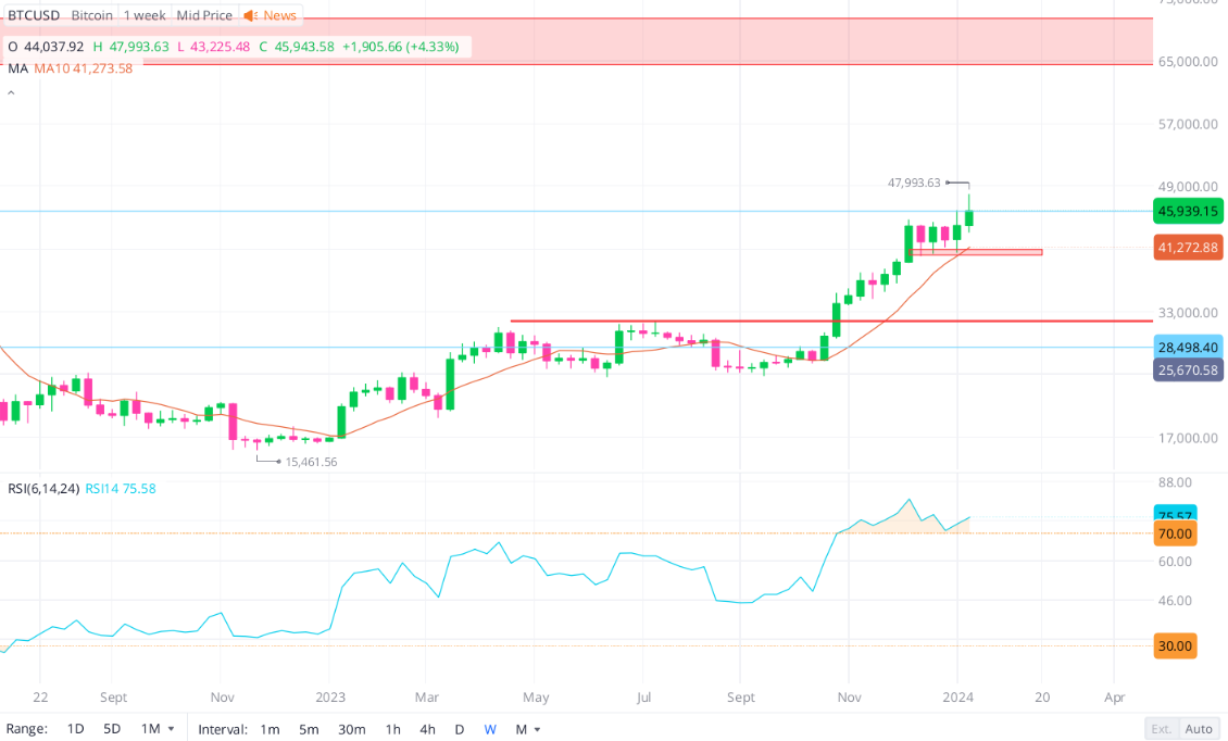 Bitcoin's Weekly High Break: Bitcoin is showing signs of breaking a new weekly high. Should this break materialize, we might be on the track to witness Bitcoin approaching or even reaching its all-time high within this year.