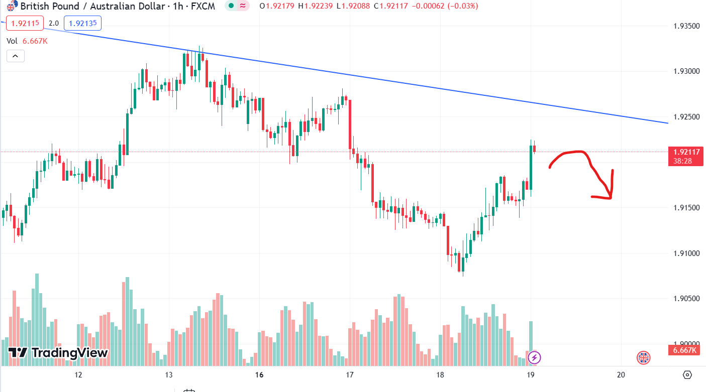 I am looking at a candlestick pattern and break to the downside and perhaps a trend line break for a short trade.